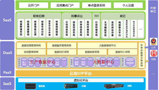 浪潮检务云平台是一个完整体系,涵盖了检察内网、侦查信息网、互联网三个网络。