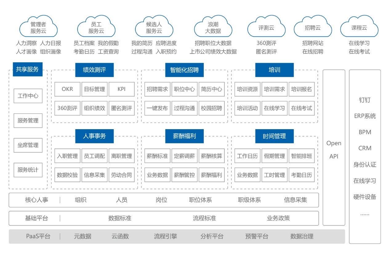 员工全生命周期管理;业务人力一体化、人力系统自动化;支持多种共享模式;内置人才盘点框架。