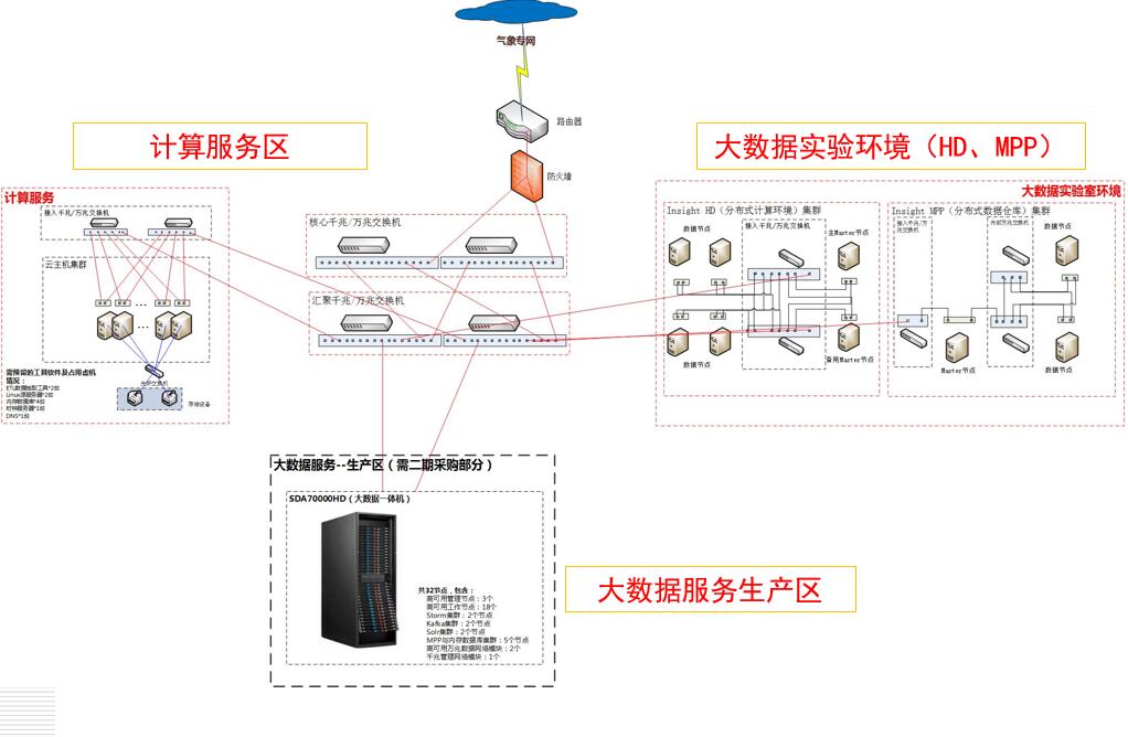 2016年,实验室的主要任务包括:搭建大数据环境、云平台环境、虚拟化环境等,确定气象大数据整体技术路线,对前沿云及大数据技术进行验证,为气象大数据生产环境提供技术支持和指导。